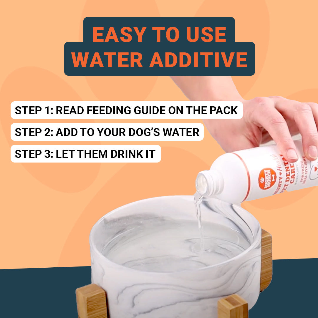 Designed by dentists to help maintain healthy teeth & gums. Simply add a few drops to your dog's bowl every day - that's it. The formula then gets to work promoting fresher breath and supporting optimal oral health.