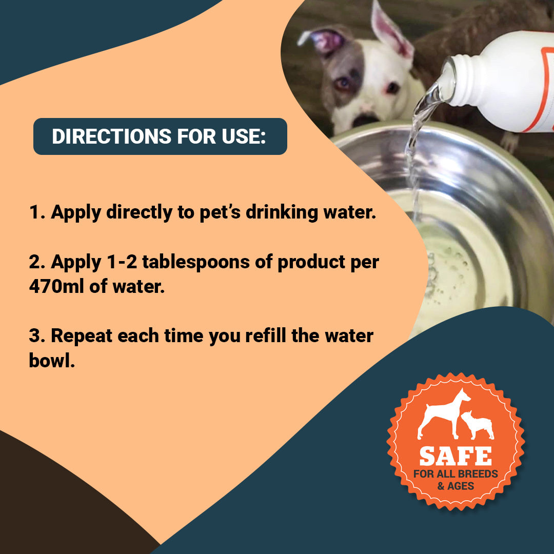 Designed by dentists to help maintain healthy teeth & gums. Simply add a few drops to your dog's bowl every day - that's it. The formula then gets to work promoting fresher breath and supporting optimal oral health.