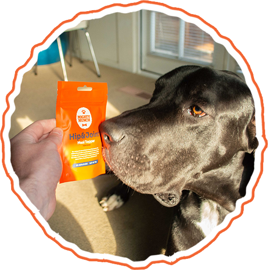 Mighty Munch has developed a break-through science-based formula that eliminates the hassle of pills and tablets for joint support. It is a delicious meal-topper that will have great results on your dog's joint mobility.